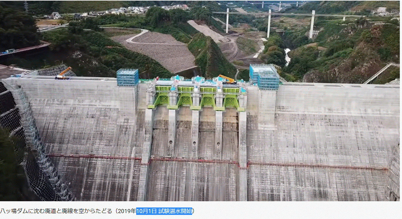 八ッ場ダムに沈む廃道と廃線を空からたどる(2019年10月1日 試験湛水開始)
