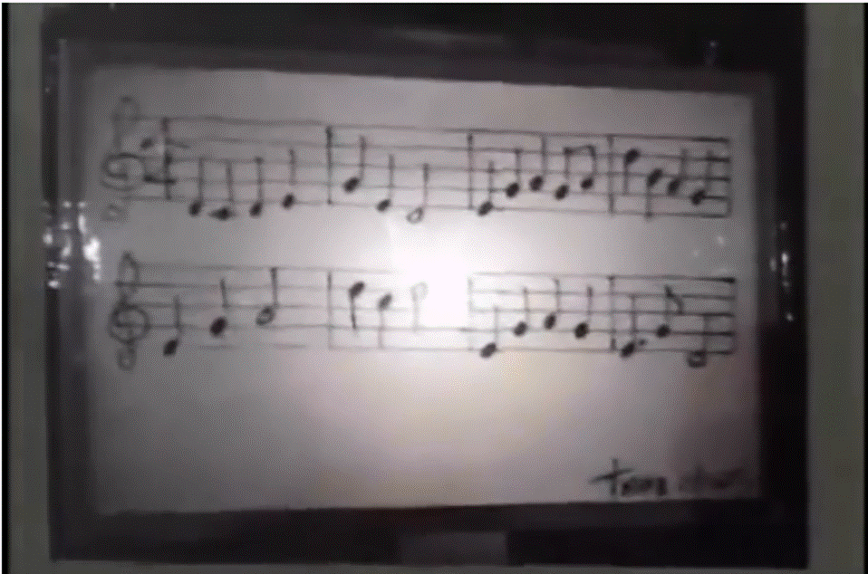 君が代というのはまあ非常に一般論的にはま歌詞が素晴らしいと千代に八千代に・・杉浦先生は別の観点から君が代国歌についてすばらしいというご意見ご見識があるそうですが、メロディーが素晴らしいということでおっしゃってるそうなんですけれどねちょっとフリップこれは御魂祭の時に先生が靖国にご奉納されたものでしょうかね?あの君が代の楽譜ですかね?そうです世界の五十数カ国の国歌を全部集めたCD ボックスを持ってるんですよ。世界の音で十数カ国の国歌をたーっと聞い聞いてみるとドレミファソラシドで言うとどの国の国歌も、ドミソのソかから始まるかドから始まるかで、普通のドレミファソラシドの音階でできてる。ところがこれ見てください日本の国歌君が代実に此処、ドレミファソラシはドじゃなくてレから始まった。レドミレソミレ♪ミソラレシラソ・・・♪とにかく世界中の国家でドかソじゃなくないとこから始まってる唯一の国歌、レから始まる。レから始まってラソミレ♪レで終わる。これは西洋音解のドレミファソラシドの音階ではなくて、雅楽発祥の今様音階レから始まる今様音階、これが実に日本古来の独自の音階でできている。これは世界唯一のそういった意味のメロディ、でそれともう一つレイドレミソミレ2小節ハモニー付いていないユニゾン、ラーソミレ終わりもユニゾンユニゾンって何ですか?ユニソンとはハーモニーがついてなくて、斉唱。コードが付いてない。だからレドミレソミレの次の、ミソラソラーっていうとこからバーンとハーモニーがついて、ドミファーミファソレミとバスがついてくるわけレドレミソミレと来てて、ミソラと来たところで、ドミーファーミ・・・ハーモニーがドーンとついた瞬間になんと感動的なことよ!そこでジーンと着ます。またそのバスの進行もとっても良い進行で、メロディからバスの進行。ハーモニー組み立てそれから使っている音階のユニークさ、すべてにおいて世界一の僕は超名曲!