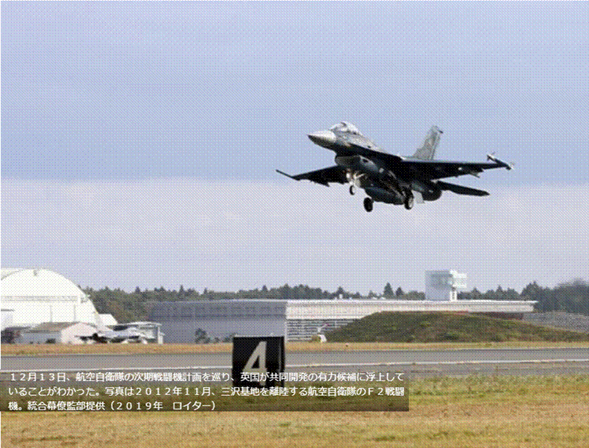 [東京 13日 ロイター] - 航空自衛隊の次期戦闘機計画を巡り、英国が共同開発の有力候補に浮上していることがわかった。自国軍向けの開発計画をすでに発表している英国が、日本と協力しようと秋波を送っており、米国以外とも安全保障面の関係を強化したい日本は関心を強めている。<英国「テンペスト」計画>日本は、退役が近づく「F2」戦闘機の後継機を2030年代から配備したい考え。複数の関係者によると、日本は米国以外との共同開発を選択肢として模索している。約5万人の兵士と空母打撃群が駐留する米国との同盟が、日本の防衛政策の柱であることに変わりない。しかし、中国が軍事力を急速に高める中、日本は他の友好国とも軍事協力を強めようとしており、英国はその筆頭に位置する。一方、空軍の次期戦闘機「テンペスト」を計画する英国は、コスト面で現実的な開発計画を取りまとめるため、2020年末をめどに、負担を共有できるパートナー国を探している。関係者によると、英国は日本に対し、戦闘機の中身であるシステムや電子機器の共同開発を提案。開発した技術の知的財産権を活用するのに制限を設けず、機体やエンジンも日本が自由に設計できる。「英国の提案に対する関心が高まっている」と、日本側の関係者は話す。関係者によると、英空軍で装備調達を担当するダニエル・ストール准将は今年後半だけで3回来日。11月中旬には、千葉県幕張で開かれた日本初の本格的な防衛装備展示会「DSEI」に参加した。討論会に登壇したストール准将は「自衛隊と英軍は多くの類似点があるが、中でも大きいのは、米軍との相互運用性を完全に確保する必要があることだ」と指摘。英国と組めば、日米英の3カ国が求める戦闘能力を作ることができると訴えた。テンペストの開発を主導するBAEシステムズ(BAES.L)も、数週間おきに日英を行き来しストール准将の動きを補佐している。BAEはDSEIにテンペストの模型を展示した。<米国勢も名乗り>自国の防衛を米国に依存する日本は、兵器の多くも米国から調達してきた。F2後継機で英国と協力すれば、主要装備の開発で日本が米国以外と手を組む初の事例となる。日本が30年前に米国とF2を共同開発した際は、仕事量の4割を米国に保証することとなった。米国は戦闘能力を左右する基本ソフトウエア(ソースコード)も日本に供与しなかった。F2後継機の開発には各国が強い関心を寄せており、米国はロッキード・マーチン(LMT.N)とボーイング(BA.N)が、英国はBAEが防衛省に提案を出した。米ノースロップ・グラマン(NOC.N)も参画に意欲を示している。編集:久保信博