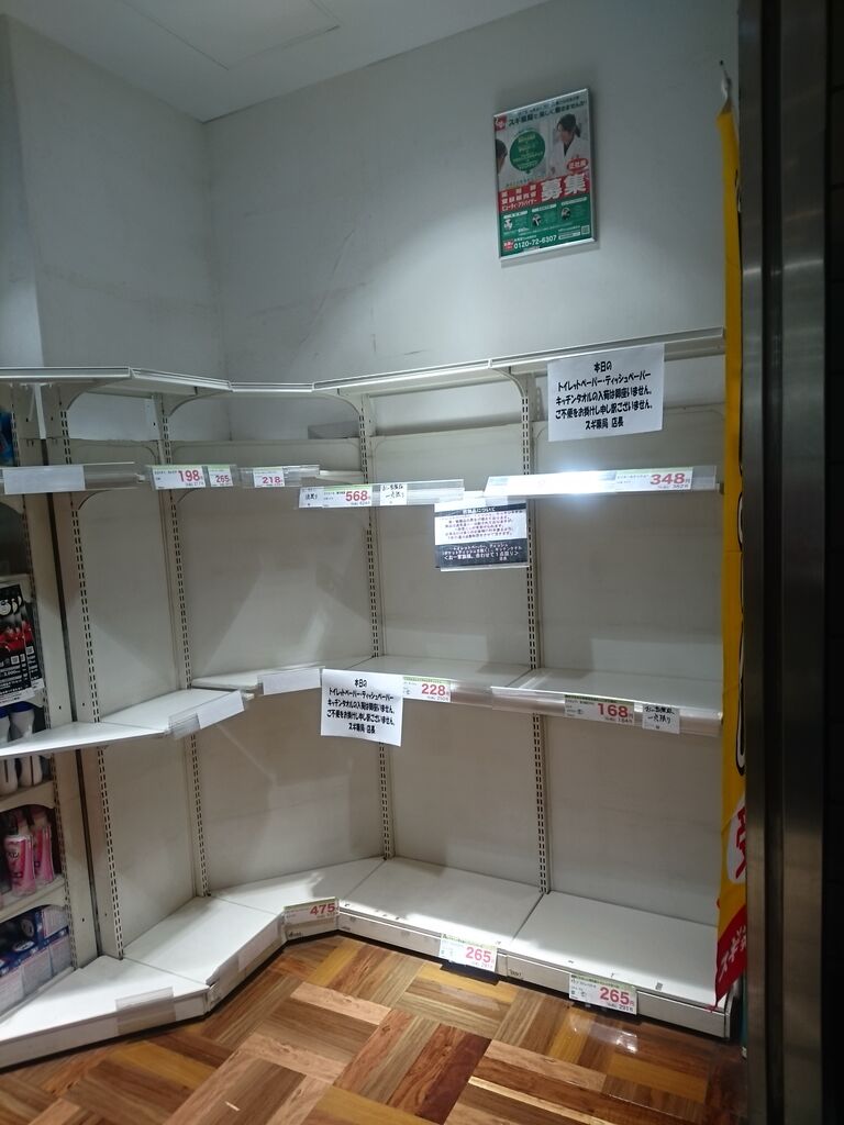 いやいや、1973年の石油危機以来のトイレットペーパー不足は転売ヤー達のの仕業というより、日本国民の民度の低下かとかもしれない。デマ情報に便乗し嘆かわしいと憂うのも簡単だが、危機慣れした日本人も、一向に出回らないマスクの流通や、日用品から食品なんでもかんでも中国産に頼る経済構造から、これはやばいと本能で感じた結果ではないか?