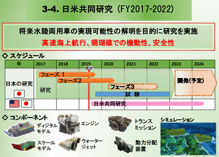 インド洋から沖縄にいたる海域の島嶼部は珊瑚礁だらけで、米海兵隊はACV1.1だけではとても揚陸作戦は行えないと考えているようだ。その為まだ共同研究の段階だが、日米で新型水陸両用装甲車の開発が打診されている。