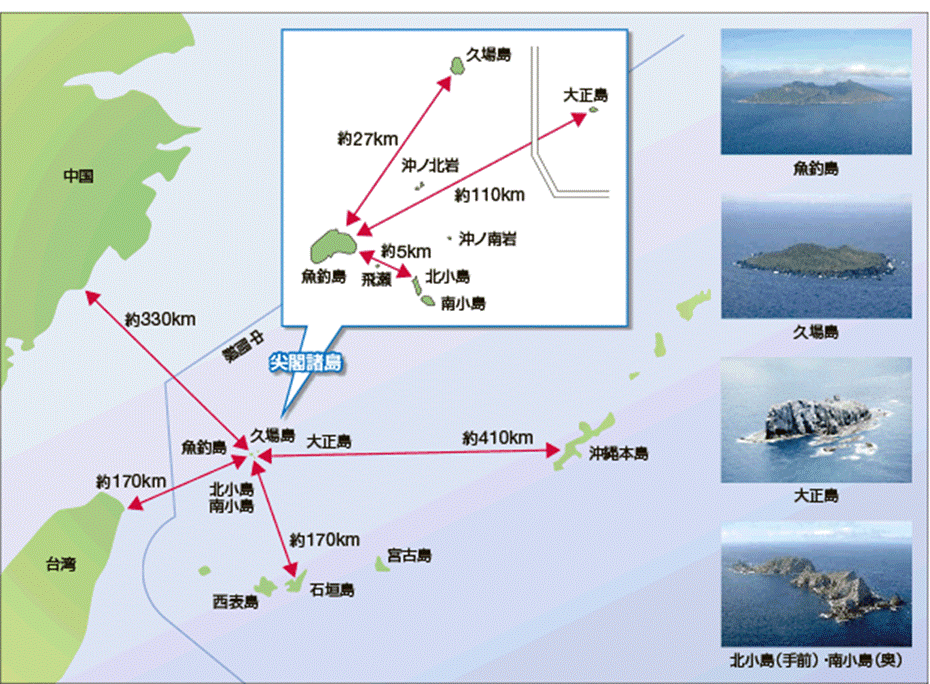 ■戦略重要拠点としての尖閣尖閣諸島は東シナ海の南西部に位置する軍事拠点としての要衝である。現在、尖閣諸島を構成する魚釣島、北小島、南小島、久場島、大正島、沖の北岩、沖の南岩、飛瀬(とびせ)のうち、久場島と大正島は在沖縄米海軍艦隊活動司令部(COMFLEATOKI)の管理下にあり、射爆撃場として使用されている。久場島は米軍の使用に供するため民間から政府が借り上げている島で、それ以外の島は全て国有地である。兵士を置くとなるとそれなりの面積が必要で、最も広い魚釣島(3.82平方キロメートル)が候補に上がる。久場島(0.91平方キロメートル)や大正島(0.06平方キロメートル)に置くにしても射爆撃場としての目的以外の利用に供することについて国内の議論がまきおこることは必至で、まして魚釣島となると反対勢力も拱(こまね)いてはいないだろう。