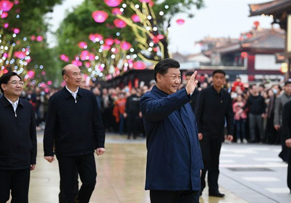 中国・陝西省の西安市を視察した習近平国家主席(2020年4月22日、写真:新華社/アフロ)