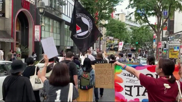 ■ANTIFA、渋谷デモにも参加東京都渋谷区では5月30日、警察官の対応に抗議するデモがあった。同月23日、渋谷警察署の警官が職務質問を拒否したクルド人男性を、取り押さえたことが発端となった。男性は当時、路上駐車していた。別のクルド人男性がその模様を撮影した映像をネットに投稿し、複数のネットユーザーが米国の騒乱と関連付けて転載していた。30日のデモには、このクルド人男性を含む180人近くが参加したとされる。一部の参加者は「ANTIFA」の旗を掲げた。このデモへの参加を呼び掛けるため、多言語のANTIFA関連のアカウントもデモ参加を呼び掛けた。現地取材のフリージャーナリスト・Gregor Wakounig氏は、デモ参加者について「自発的な反ファシスト、特定政党の支持者、無政府主義者、他の政治的見解の人々が集まった」とツイートしている。立憲民主党の石川大我議員がデモに参加している。公開された映像によると、石川議員はデモ終了時に、騒動について「国会で大きく取り上げる」と述べた。(編集・佐渡道世