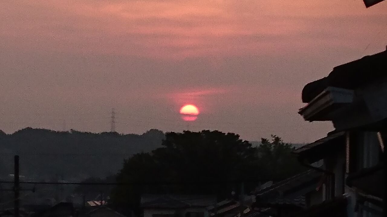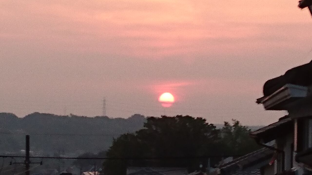 東の空は白んできて、薄らと赤くなり始めました。今朝の日の出は5:01