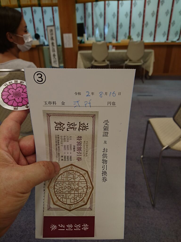 ご遺族・崇敬者の玉ぐし料は弐千円からとなっております。