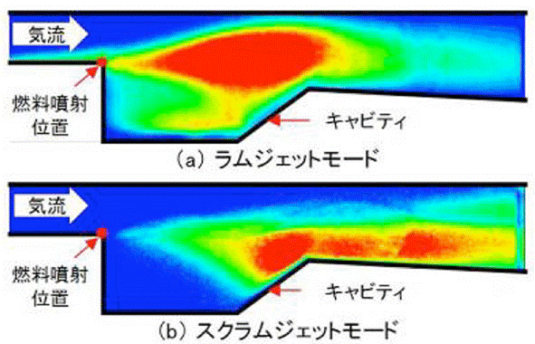 必要な推力獲得の見込み、極超音速飛翔可能に防衛装備庁が研究を進める「極超音速飛行を可能とするスクラムジェットエンジンの研究」は、宇宙航空研究開発機構(JAXA)との研究協力によって、燃焼器コア部を試作。燃焼試験では、極超音速時と、超音速時の両モードで良好な燃焼を確認した。さらに、この燃焼試験の解析によって、目指す飛翔に必要な推力を見込めることが分かった。ゲームチェンジャーとなりうる極超音速誘導弾の研究が進んでいる。これは防衛装備庁が去る12・13日に行った技術シンポジウムで示した研究の成果。この誘導弾が実現すれば、マッハ5の極超音速で飛翔しながら、高度・軌道の変更して目標まで到達することになる。相手側の地対空ミサイル(SAM)からすれば、高度制限を超える非常に高い高度を高速で飛んでくる。高高度の迎撃システムでは、下限の下を飛んでくる。非常に迎撃が難しい高度を高速で飛び、かつ軌道変更ができて、動きが予測しにくいもの。燃焼器の燃焼試験では、燃焼器のコア部分を試作。JAXA角田宇宙センターの基礎燃焼風洞で試験を行った。ジェット燃料であるJetA-1を用いて、極超音速で巡航飛行するスクラムジェットモードと、超音速で加速するラムジェットモードで燃焼試験を実施。両モードとも安定して燃焼すること実証した。また、モード別に燃焼する部分が異なることを確認することができた。さらに、取得した燃焼器壁面静圧分布によってエンジン内部の流れの解析を行った。すると、実機相当のエンジンでは要求する飛翔に必要な推力を得る見込みとなった。ブースターで超音速まで、弾頭が極超音速へこの研究の目的は、極超音速の巡航と超音速の加速を両立させる「デュアルモード・スクラムジェットエンジン(DMSJ)」を成立させること。さらには、即応性を確保するジェット燃料を採用すること。そもそもスクラムジェットエンジンは、自機が一定以上の速度をもって飛行しなければ作動できないエンジン。極超音速の気流を空気取り入れ口で圧縮。その超音速の気流に燃料を噴射して燃焼させることで推力を得る。大きな特徴は、ダクトのような構造となっていて非常にシンプルな形状であること。しかしながらマッハ5以上の飛翔が可能であって、その速度域では最も推力・燃費性能の高いエンジンとなる。世界各国で関心を示していて、研究開発が進められている。特に米国ではX-51プログラムとして先行して研究を進めているところだ。スクラムジェットエンジンを搭載した極超音速飛翔の仕組みは、飛翔体に加速するためのスクラムジェットエンジン部分を搭載する。これに、ある速度まで加速するためのブースターが付くことになる。打ち出した直後は、ブースターによってスクラムジェットエンジンが作動する速度まで加速する。一定の速度に達したら、ブースターを切り離し、スクラムジェットエンジンを作動させてさらに加速。極超音速で目標まで飛翔する。この研究は装備庁として経験が浅い。強力な研究パートナーとして、JAXAとの間で研究協力を結んでいる。JAXAが目指すのは宇宙輸送機などで、異なるアプリケーションになるが、超音速から極超音速へ加速していく技術、ジェット燃料を使用する技術は両者共通していて、研究協力が成立している。即応性確保のためジェット燃料採用今後エンジンシステムレベルで地上試験も