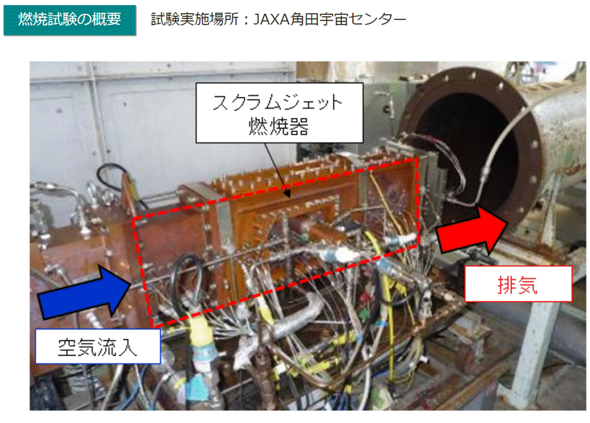 炭化水素燃料を用いたスクラムジェットエンジンの成立性の検証のため、JAXAとの研究協力の下、燃焼試験を行い、ジェット燃料によるスクラム燃焼に成功するとともに、冷却系検討に資する基礎データを取得しました。