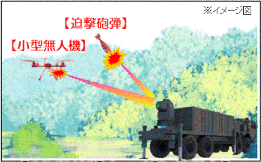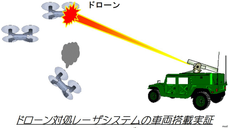 まずは、2021年度予算で通過した10kw級の対ドローン用と限定的だがレーザ兵器としては国内初の実用化となる。