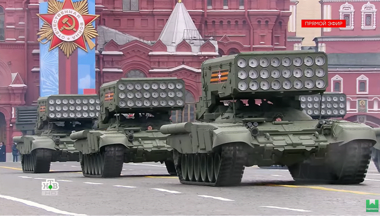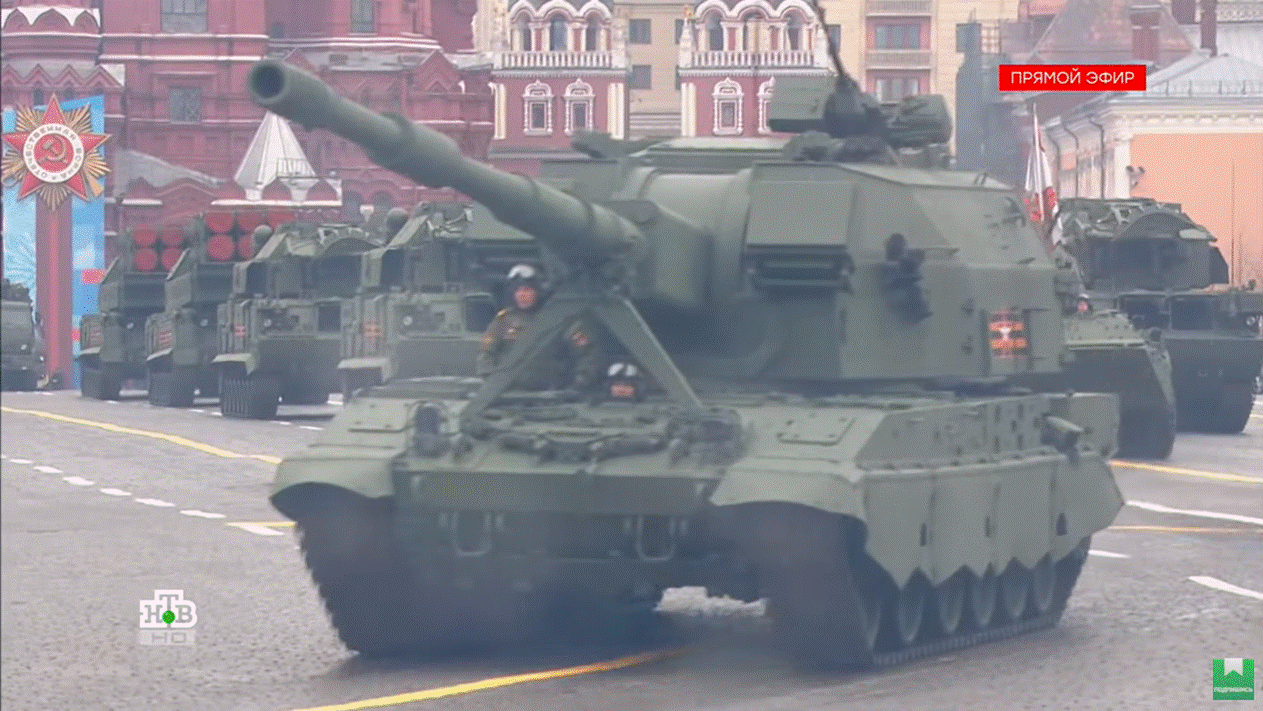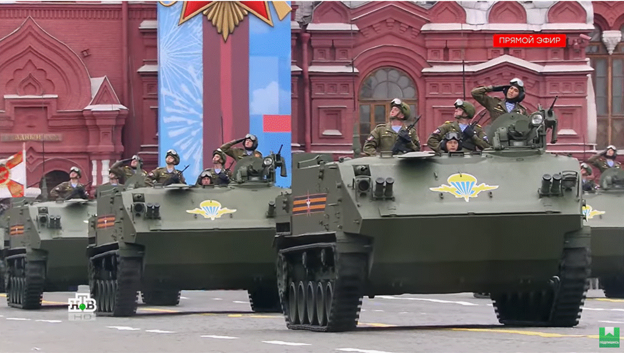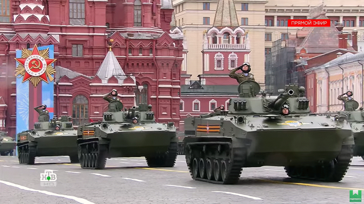 今回は↓昨年のドイツ戦勝パレードに比べ最新鋭T-14アルマータ戦車はモスクワのパレードに出た輌数が少ない。