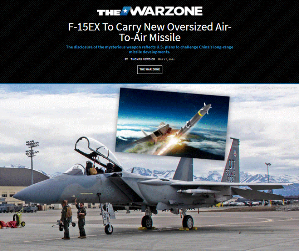 F-15EXに大型の新型空対空ミサイルを搭載へ謎の兵器の公開は、中国の長距離ミサイル開発に挑戦する米国の計画を反映したものです。