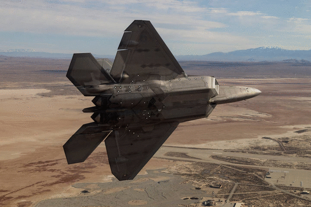 第412試験航空団第411飛行試験飛行隊のF-22ラプターがカリフォルニア州エドワーズ空軍基地から離陸。 <em>アメリカ空軍の写真:ジャンカルロ カセム</em><br>